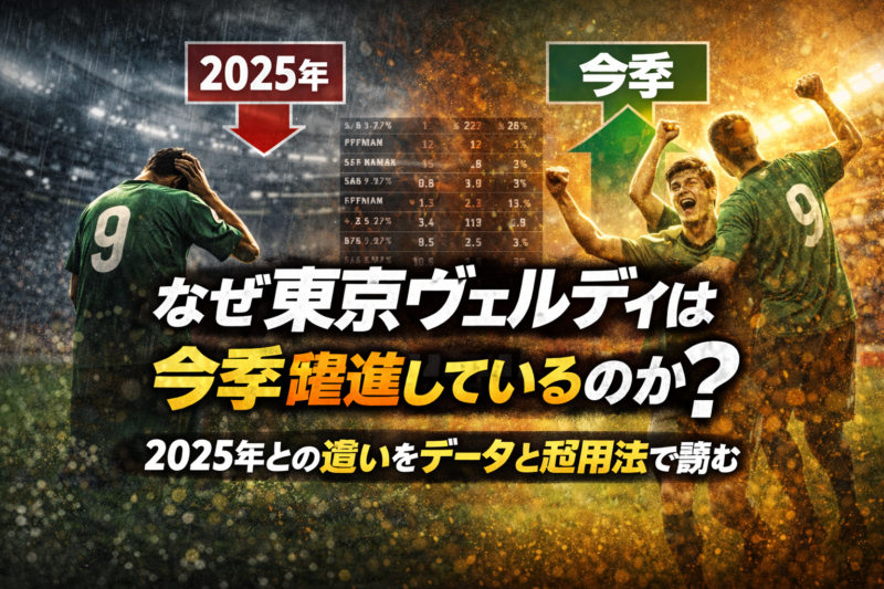 東京ヴェルディの今季躍進は、守備の劇的改善ではなく、得点ペース上昇とPK戦での勝点回収が核心。2025年との違いをデータと起用法から整理する。