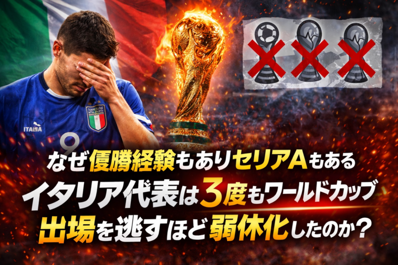 EURO 2020を制したイタリア代表が、なぜ2018年、2022年、2026年とワールドカップから遠ざかったのか。育成、セリエAでの若手出場機会、代表の役割継承という3つの構造問題から整理する。 -